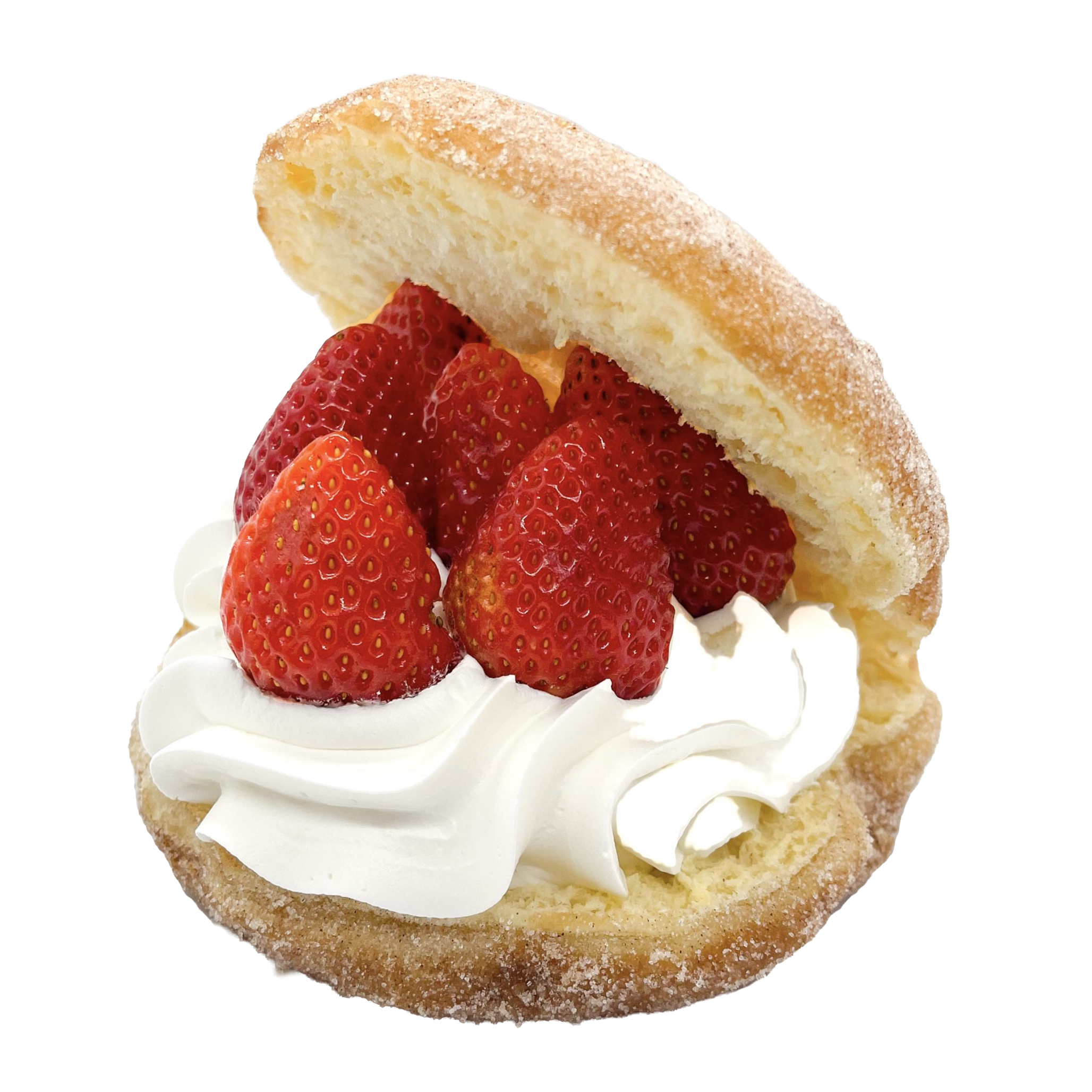 A SAIGON CINNAMON DONUT FILLED WITH A SOY WHIPPED CREAM, AND FRESH STRAWBERRIES!